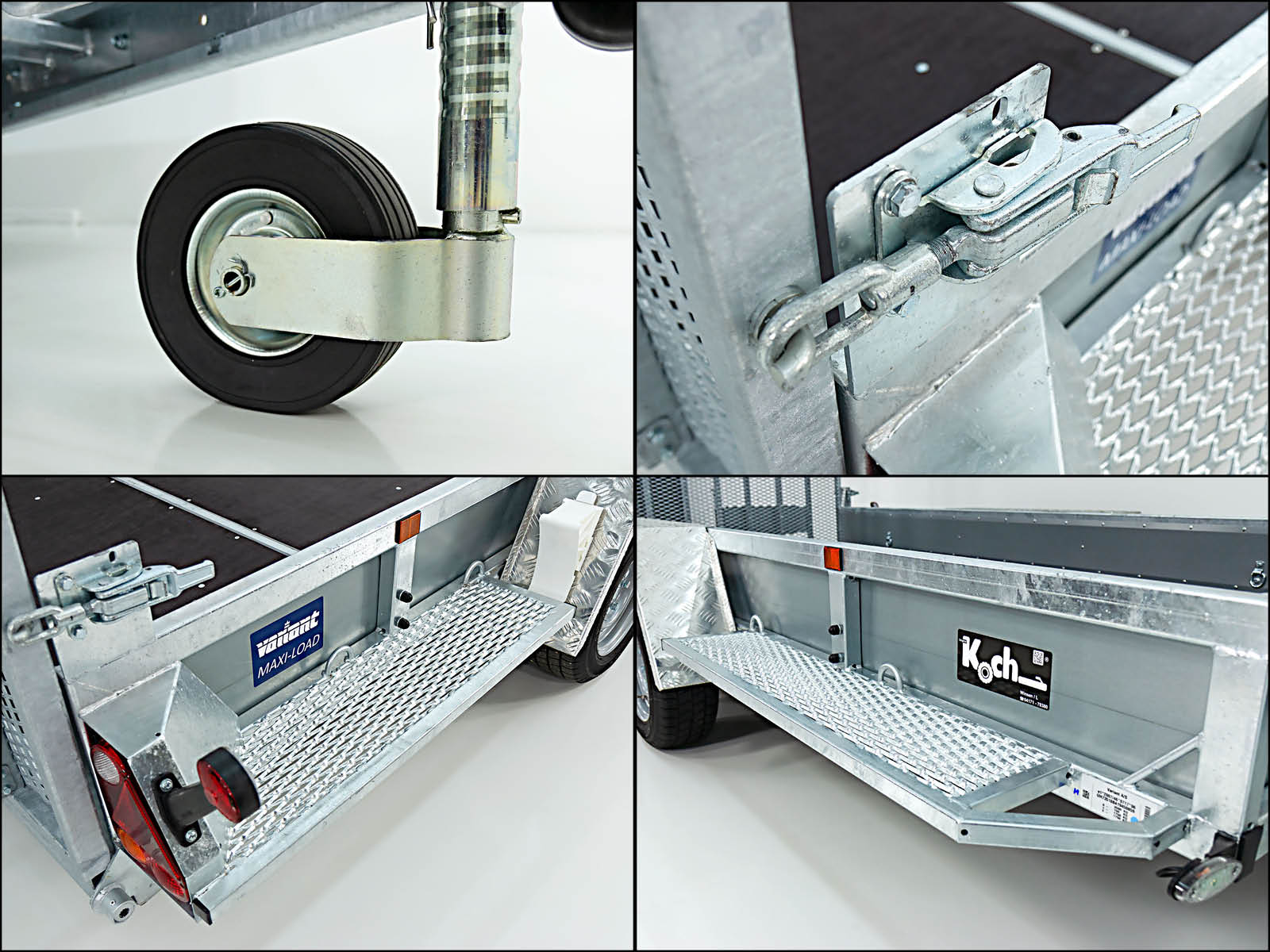 - Blattfedern | V-Deichsel mit Zugkugelkupplung abschließbar | Schwerlaststützrad