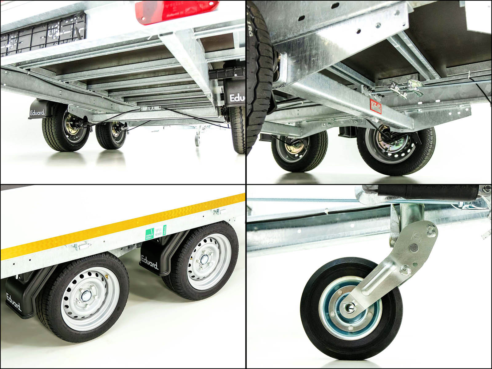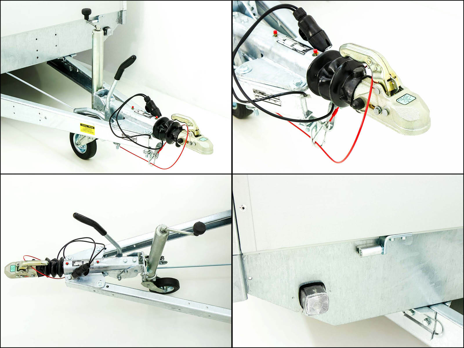 - Gummifederachse | V-Deichsel mit Zugkugelkupplung | Automatik-Stützrad | Rückfahrautomatik