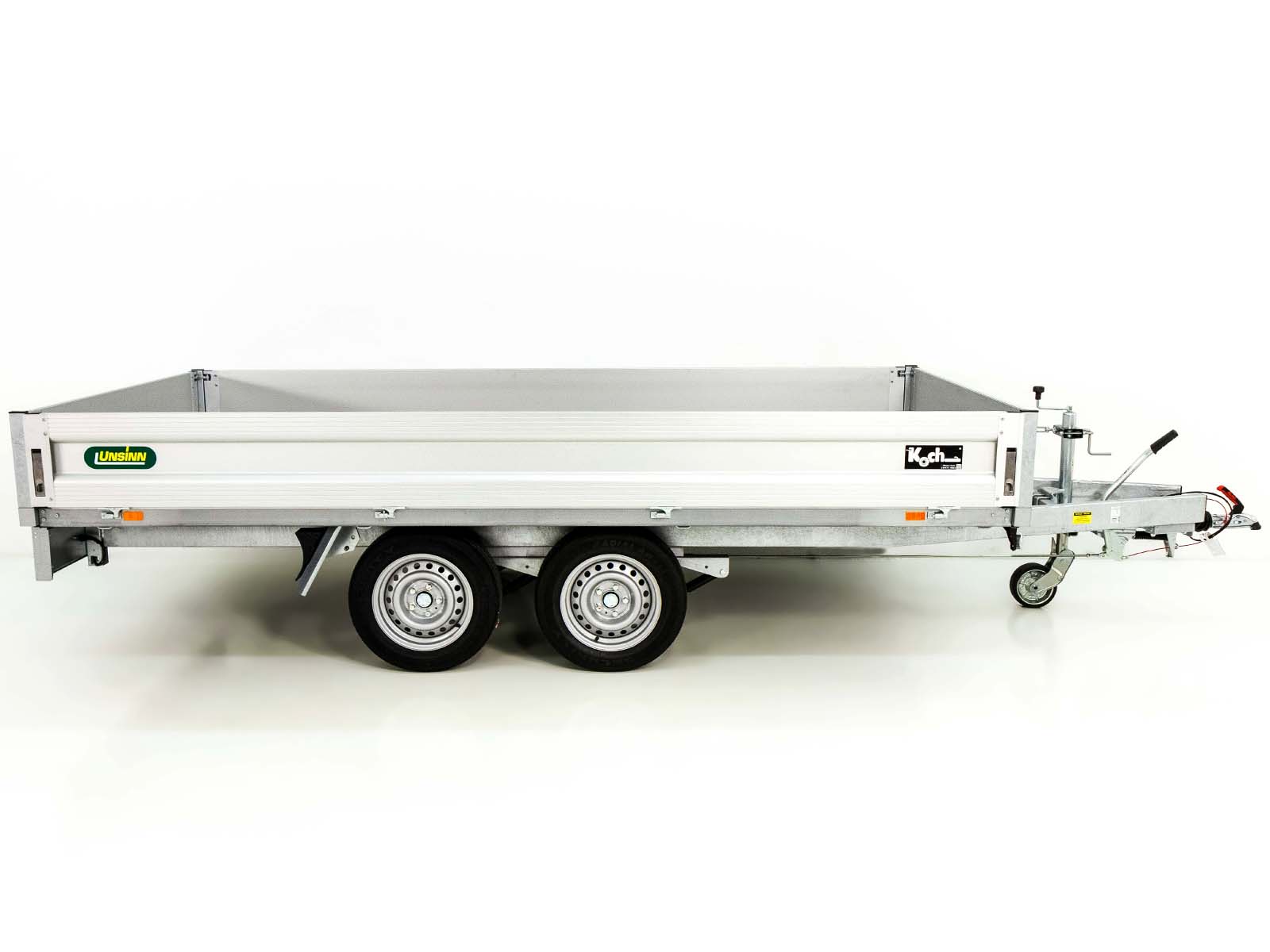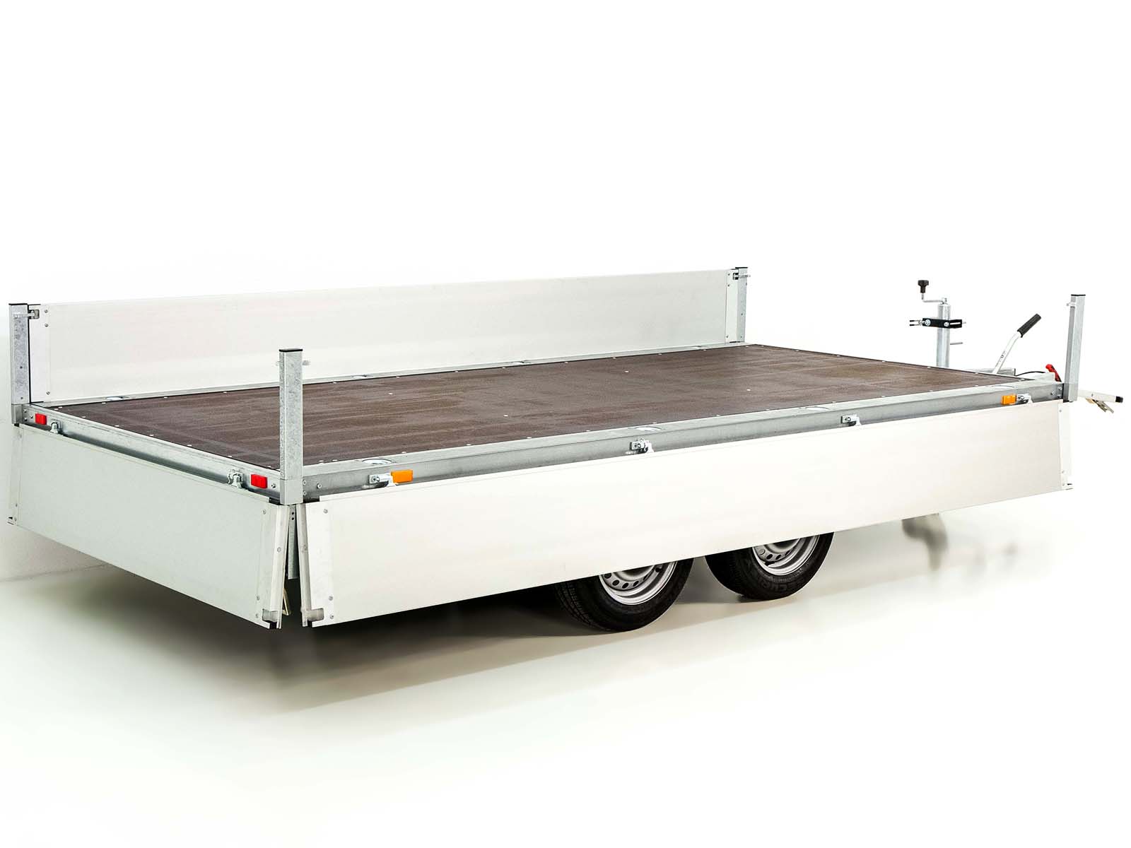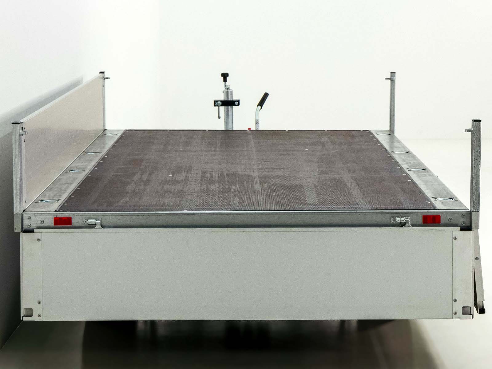 Wird eine freie Ladefläche benötigt, können die Bordwände des Anhängers mit wenigen Handgriffen nach unten geklappt, oder ganz entfernt werden.