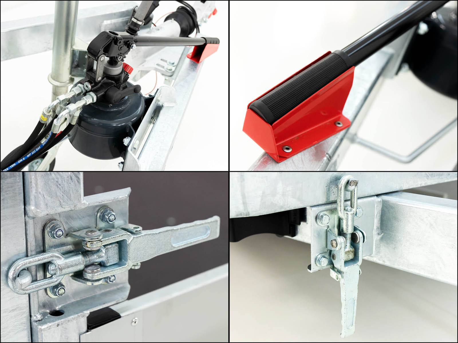 - Ladefläche kippbar ca. 11,5° mit einfachwirkender manueller Pumpe