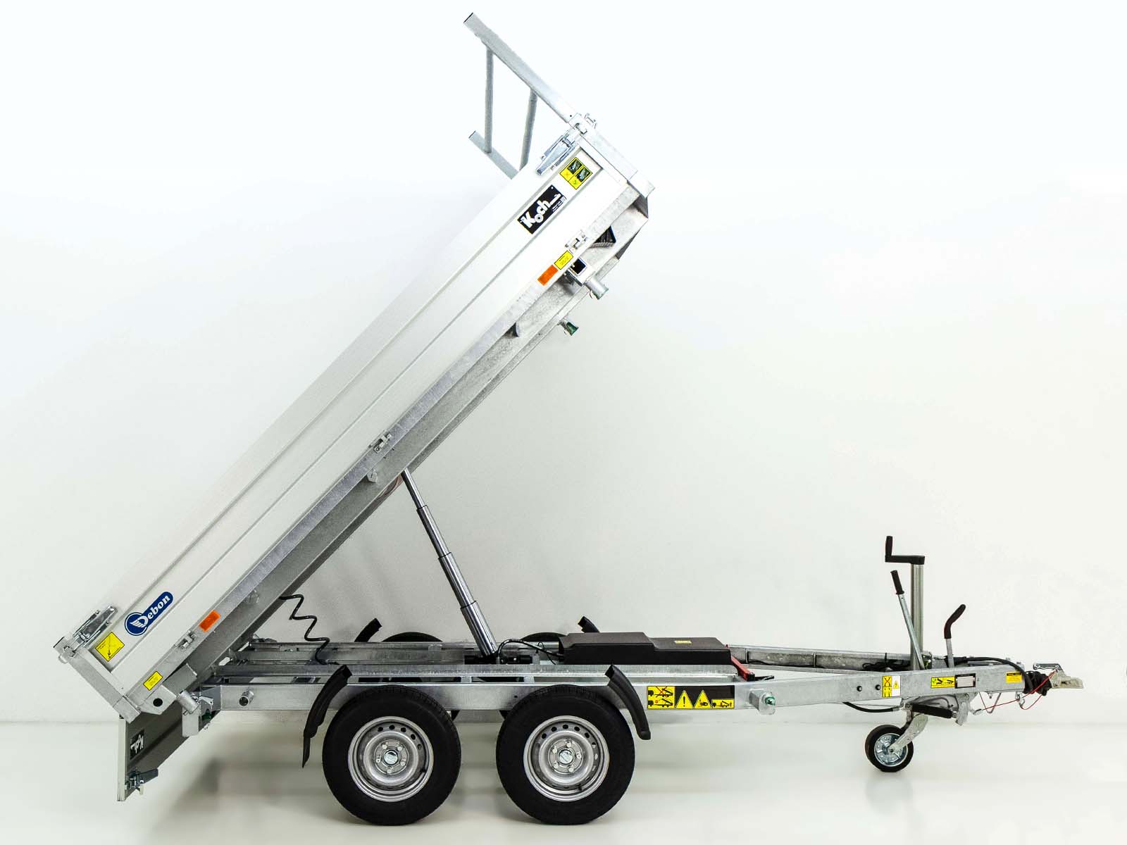 - Achse und Zugrohr komplett feuerverzinkt | Gummifederachse | V-Deichsel mit Zugkugelkupplung | Automatik-Schwerlaststützrad