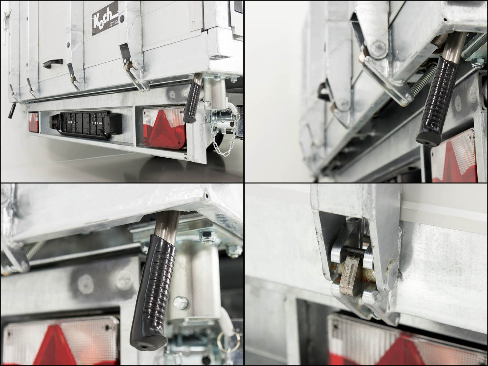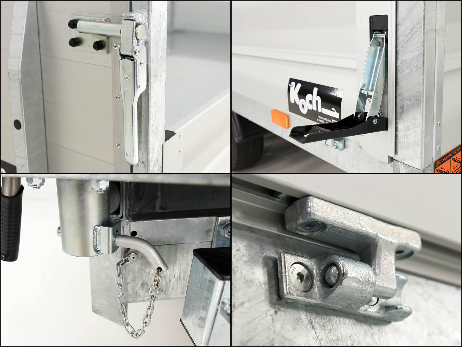 - Zurrbügel: 8 Stück im Bodenrahmenprofil, gummiert 500 daN (kg)