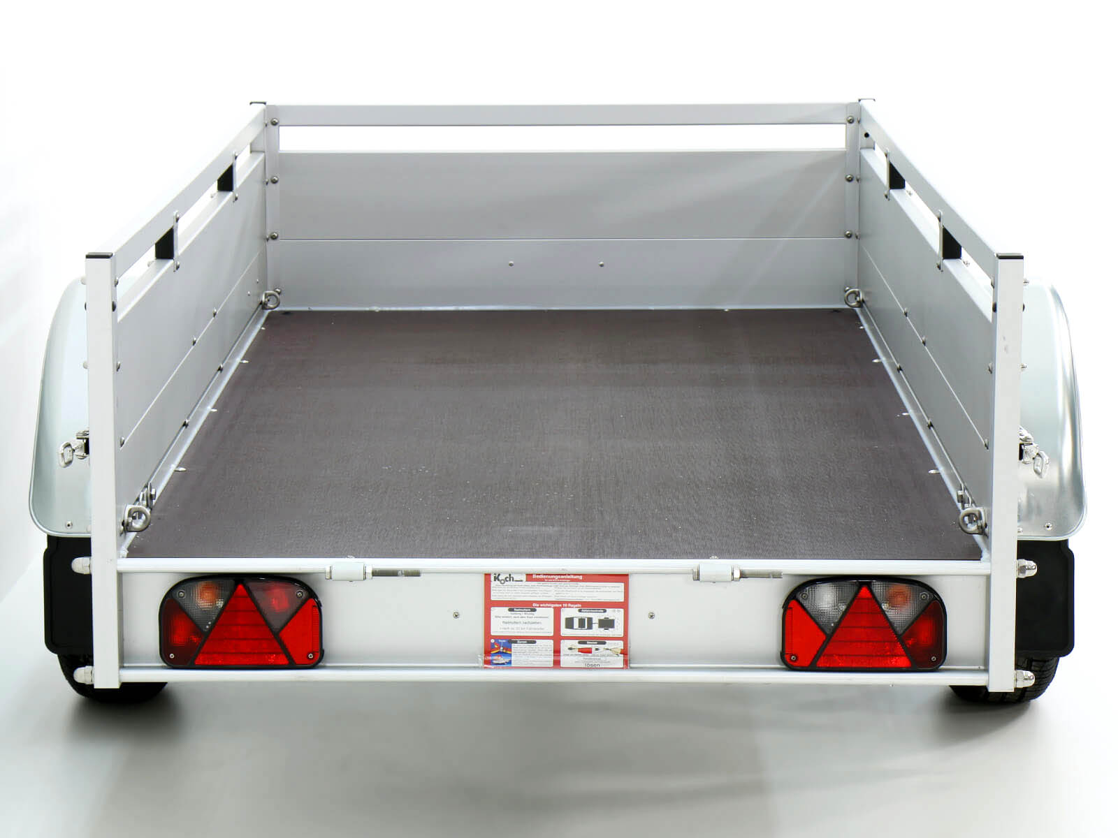 PKW-Anhänger Typ U4 mit einem Lademaß 125 x 250 x 45cm. Leichter Aluminium-Anhänger mit zuläßigem Gesamtgewicht von 750kg und einer Nutzlast von 570kg inklusive 10 Jahren Garantie. Koch-Anhängerwerke fertigt seit über 30 Jahren Qualitätsanhänger made in Germany.