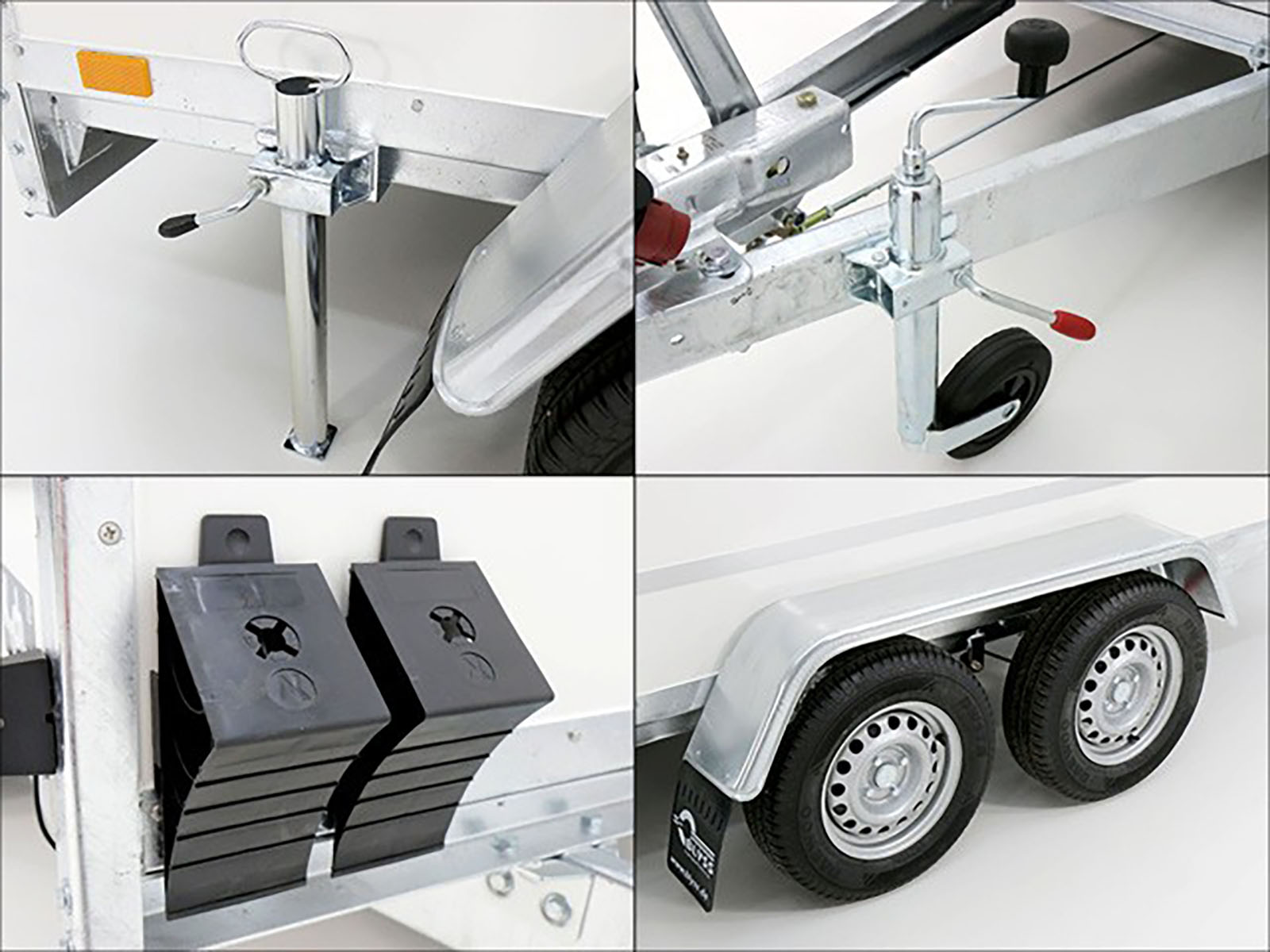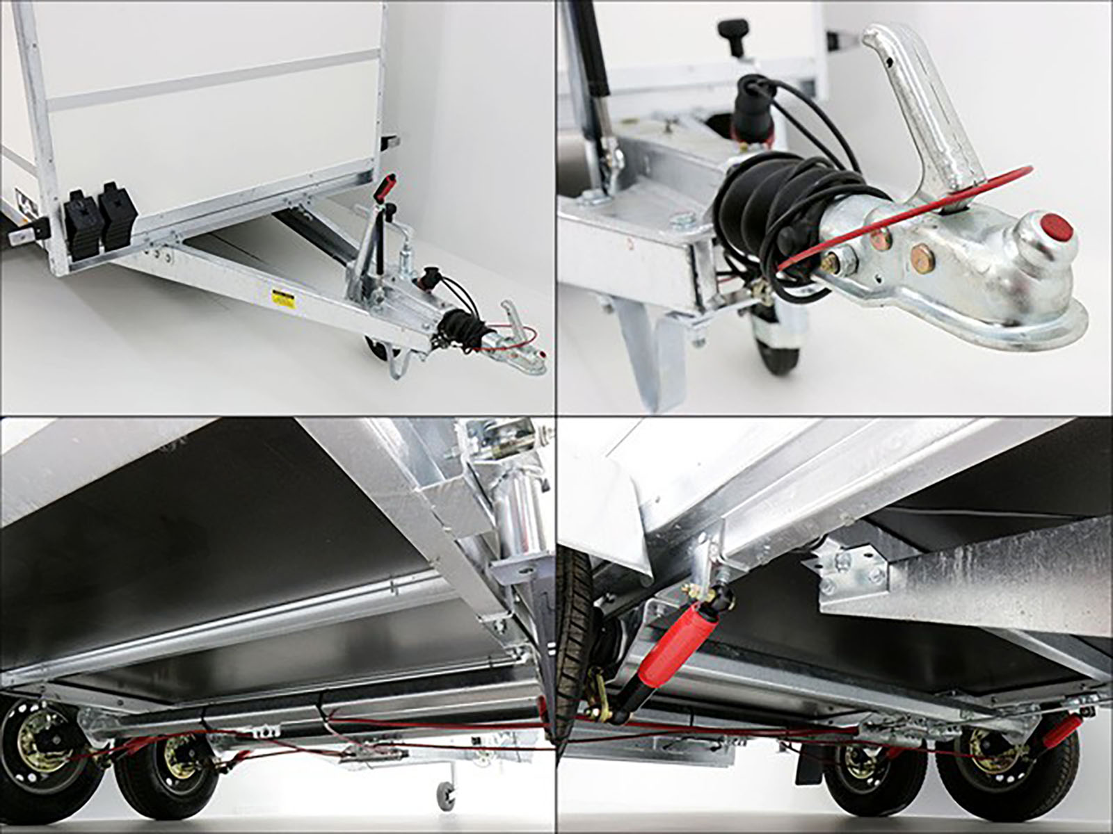 - Achse u. Zugrohr komplett feuerverzinkt | V-Deichsel mit Zugkugelkupplung | Stützrad