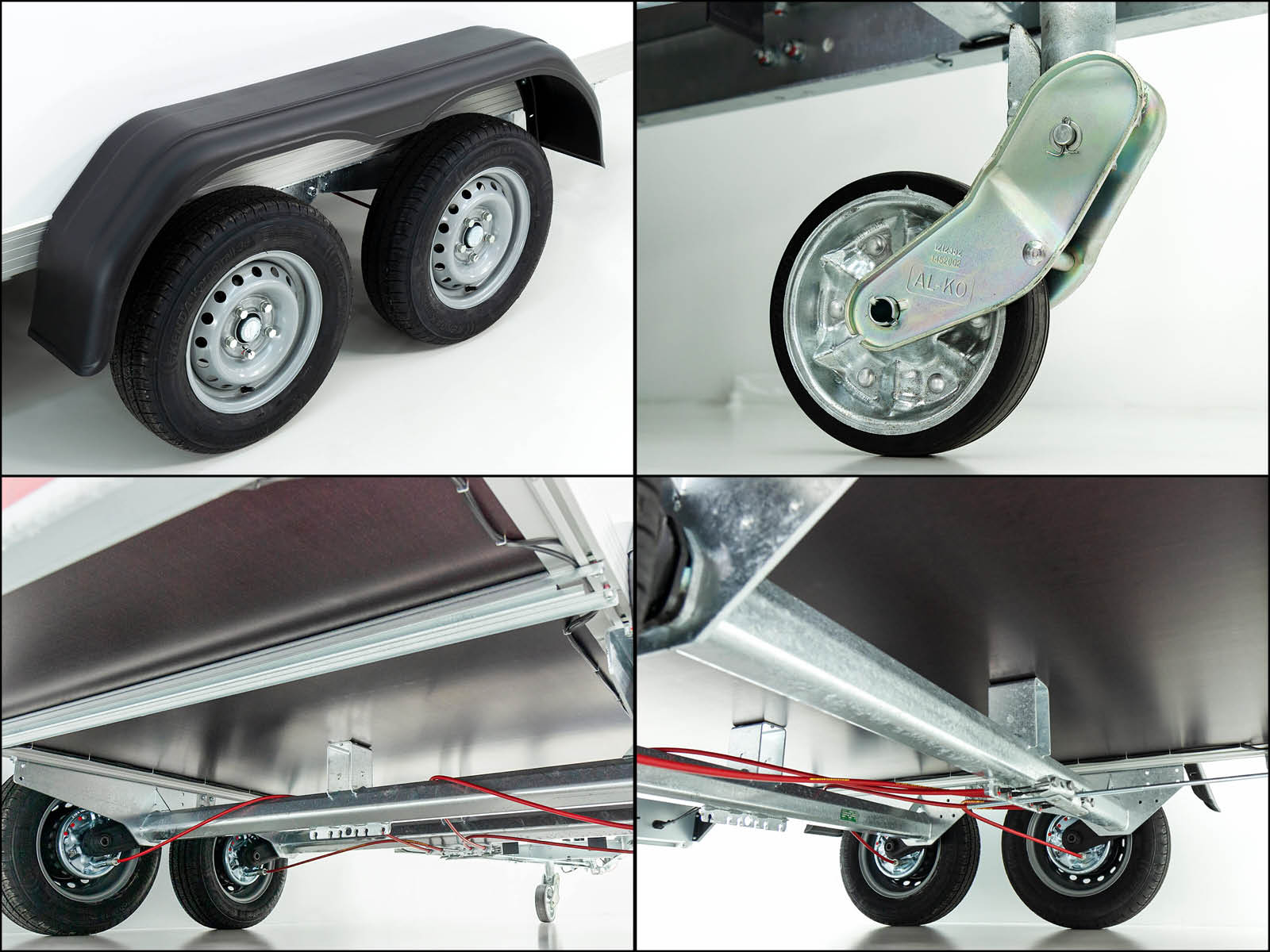 - Achse u. Zugrohr komplett feuerverzinkt | Gummifederachse | V-Deichsel mit Zugkugelkupplung | Rückfahrautomatik |