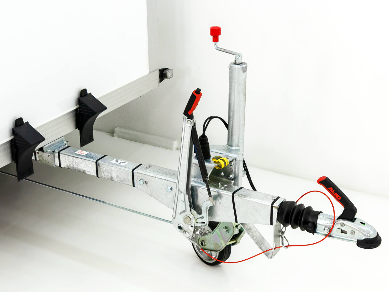 - Achse u. Zugrohr komplett feuerverzinkt | Gummifederachse | V-Deichsel mit Zugkugelkupplung | Rückfahrautomatik | Schwerlast-Automatikstützrad